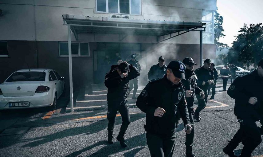İzmir'de Polis Okulunda Yangın Tatbikatı