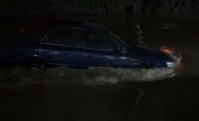 Araç bir süre suya gömülü şekilde ilerlerken çevredeki vatandaşlar yaşanan o anları cep telefonu kameralarıyla kaydetti. Görüntülerde otomobilin sel sularının arasında neredeyse yüzerek ilerlediği ve çevredeki vatandaşların şaşkınlıkla izlediği görülüyor.