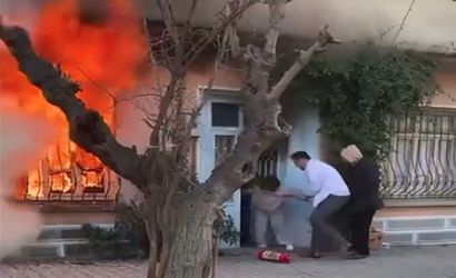 İZMİR’İN SEFERİHİSAR İLÇESİNDE TEK KATLI KERPİÇ EVDE ÇIKAN YANGINDA CAN PAZARI YAŞANDI. EVDEKİ KEDİSİNİ KURTARMAK İÇİN ALEVLERİN ARASINA DALAN YAŞLI KADIN, MAHALLE SAKİNLERİ TARAFINDAN GÜÇLÜKLE DIŞARI ÇIKARTILARAK YANMAKTAN SON ANDA KURTARILDI.