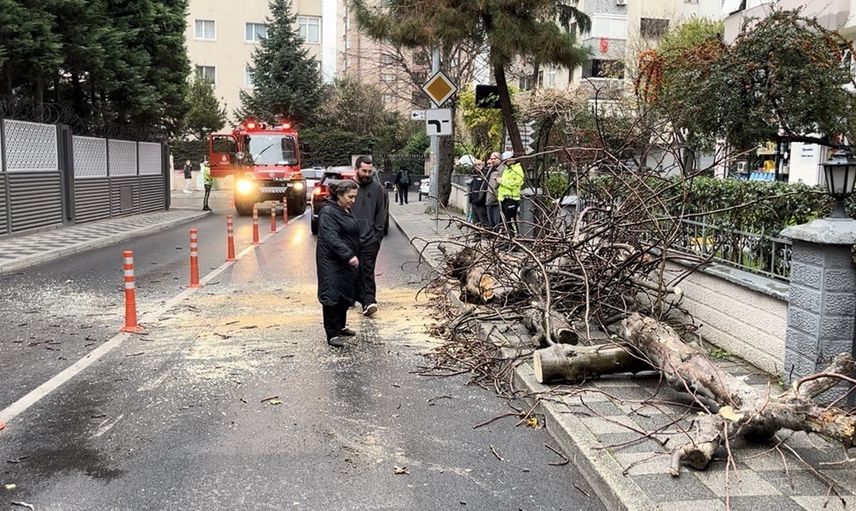 Olayın bildirimi üzerine itfaiye ve polis ekipleri sevk edildi. İtfaiye ekipleri devrilen ağacı keserek yoldan kaldırırken, polis ekipleri güvenlik önlemleri alıp sokağı bir süre trafiğe kapattı.