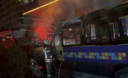 Kağıthane'de benzin istasyonunda 2 minibüs alev aldı