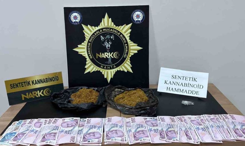 Operasyon kapsamında ele geçirilenler arasında 2 parça halinde toplam 144,7 gram tütüne emdirilmiş sentetik kannabinoid, 1 parça halinde 0,50 gram sentetik kannabinoid hammaddesi ile suçtan elde edildiği değerlendirilen 9 bin 750 lira bulundu.