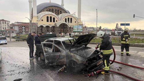 Tekirdağ'ın Kapaklı ilçesinde seyir halindeki otomobil Yeni Sanayi Kavşağı'nda alev aldı; itfaiye yangını söndürdü, araç kullanılmaz hale geldi, yaralanan yok.