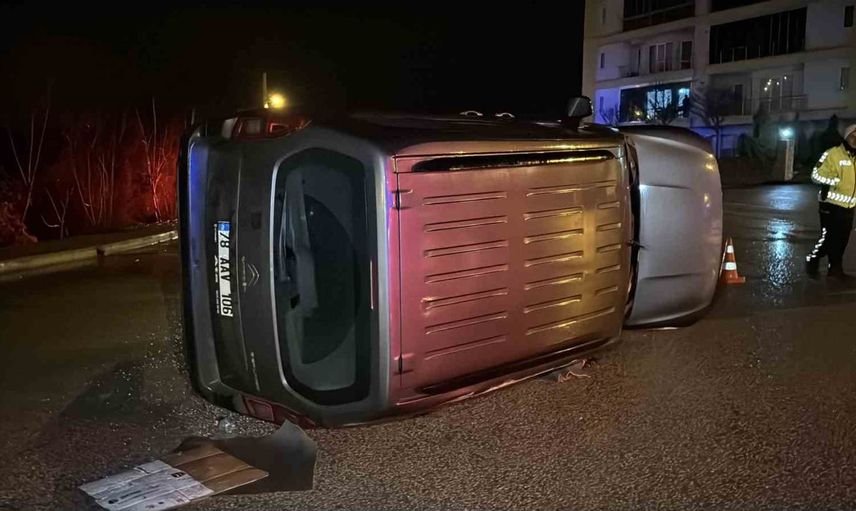 Karabük'te hafif ticari araç kaldırıma çarpıp devrildi: 1 yaralı