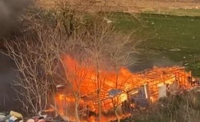 İhbar üzerine olay yerine gelen itfaiye ekipleri, alev topuna dönen ağılı yarım saat içerisinde söndürdü.