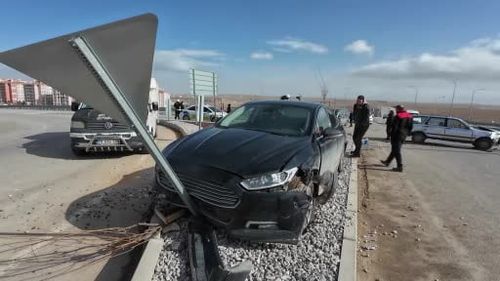 Karaman'da ters yöne giren otomobil köprülü kavşakta kaza yaptı