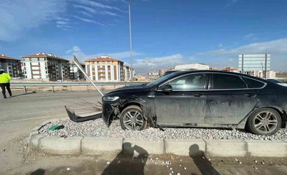 Karaman'da ters yöne giren otomobil köprülü kavşakta kaza yaptı