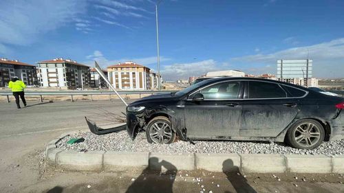 Karaman'da ters yöne giren otomobil köprülü kavşakta kaza yaptı