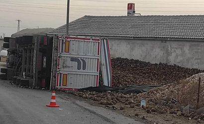 Karapınar'da pancar yüklü tır devrildi: 1 yaralı