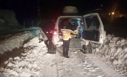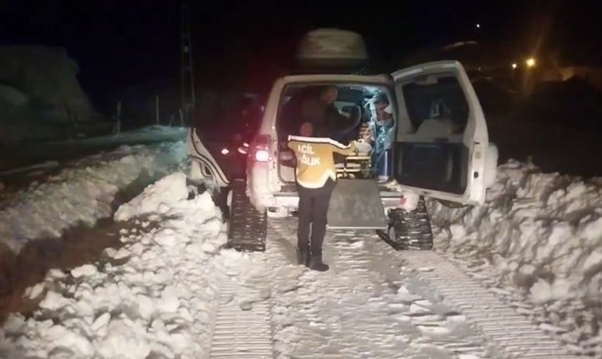 Yoncalık köyüne diyaliz hastasını almak için yola çıkan paletli ambulans, kar nedeniyle ilerleyemeyince bölgeden yardım istendi.