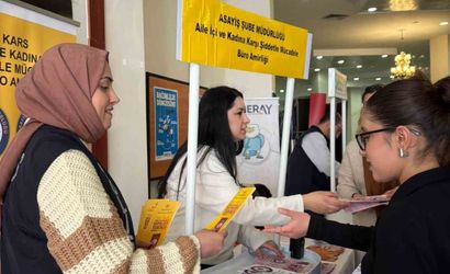 Kars İl Emniyet Müdürlüğü Asayiş Şube Müdürlüğü Aile İçi ve Kadına Şiddetle Mücadele Büro Amirliği tarafından Kafkas Üniversitesi Ahmet Arslan Kongre ve Kültür Merkezi'nde düzenlenen etkinlikte, öğrencilere Kadın Destek Uygulaması (KADES) tanıtıldı.