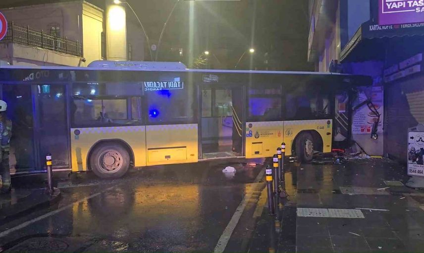 İstanbul’un Kartal ilçesinde meydana gelen kazada, seyir halindeki bir İETT otobüsü binanın duvarına çarptı.