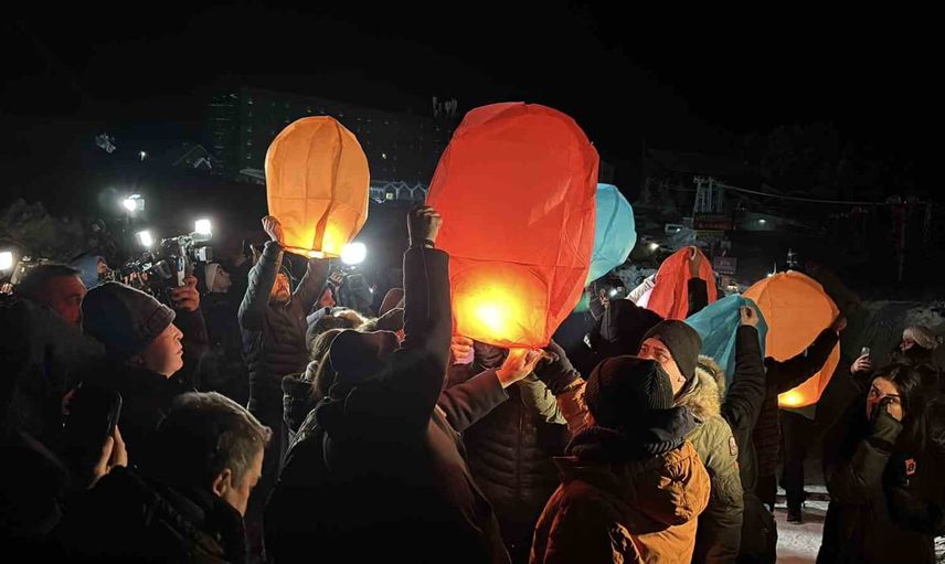 Gece yarısı hava sıcaklığının sıfırın altına düştüğü Kartalkaya’da, aileler saatler 03.17'yi gösterdiğinde otel binasının önünde toplandı. Duygusal anların yaşandığı anmada, hayatını kaybedenlerin isimleri ve onları temsilen ‘Melek’ sembolleri projeksiyonla otelin duvarına yansıtıldı. Aileler, kaybettikleri çocukları, eşleri ve kardeşleri için gökyüzüne dilek fenerleri bıraktı.