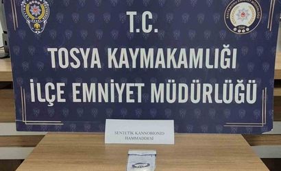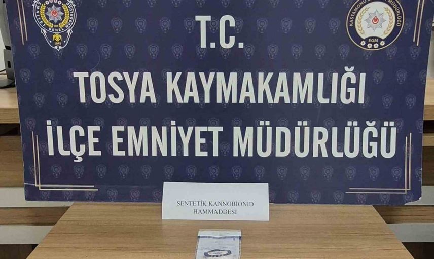 Tosya İlçe Emniyet Müdürlüğü personelince, D100 karayolu üzerinde durdurulan araç ve araç içindeki üç şahıs üzerinde yapılan aramada, net ağırlığı 21,65 gram sentetik kannobinoid hammaddesi ele geçirildi.