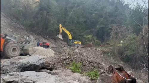 Kastamonu'da sağanak sonrası İnebolu-Doğanyurt-Cide karayolunda İlyasbey mevkiinde meydana gelen heyelan, Karayolları ekiplerinin çalışmasıyla ulaşıma açıldı.