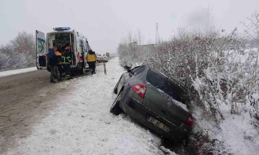 Kastamonu'da etkili olan kar yağışı, Taşköprü istikametindeki yolda kayganlaşmaya yol açtı ve bu nedenle bir otomobil kontrolden çıkarak yan yattı. Kazada 4 kişi yaralandı.