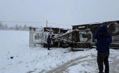 Kastamonu'da kar yağışı tır devrilmesine yol açtı