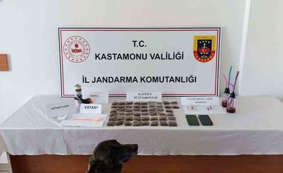 Jandarma ekiplerinin gerçekleştirdiği operasyonda 22 adet ekstazi hap, 1 adet sentetik ecza hapı, 356 gram sentetik kannabinoid katkılı tütün, 1 paket sigara sarma kağıdı, 4 adet uyuşturucu kullanma aparatı, 1 gram metamfetamin, 50 adet kurusıkı silah fişeği ve 2 adet cep telefonu ele geçirildi.