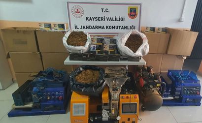 Aramalarda bin adeti dolu toplam 131 bin makaron, 100 kilogram kaçak tütün, 3 adet sigara basma makinesi ve 1 adet kompresör ele geçirildi.