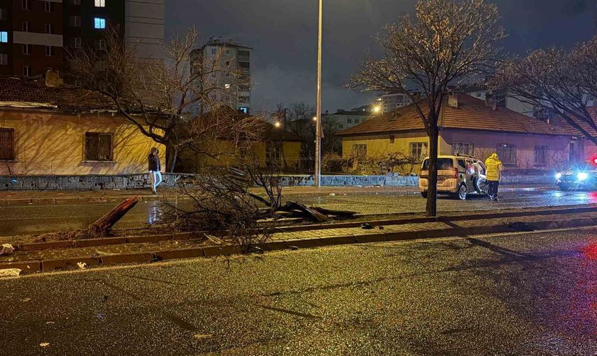 Kayseri’nin Kocasinan ilçesinde meydana gelen kazada, A.C. yönetimindeki 34 DRR 312 plakalı hafif ticari araç ile E.Ç. yönetimindeki 38 VE 301 plakalı otomobil çarpıştı. Çarpışmanın etkisiyle savrulan hafif ticari araç, orta refüjdeki ağacı ikiye bölerek karşı yola geçti.