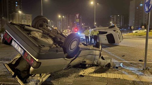 Kayseri Melikgazi'de Kavşakta Kaza: Araçlardan Biri Yan Yattı, Diğeri Takla Attı