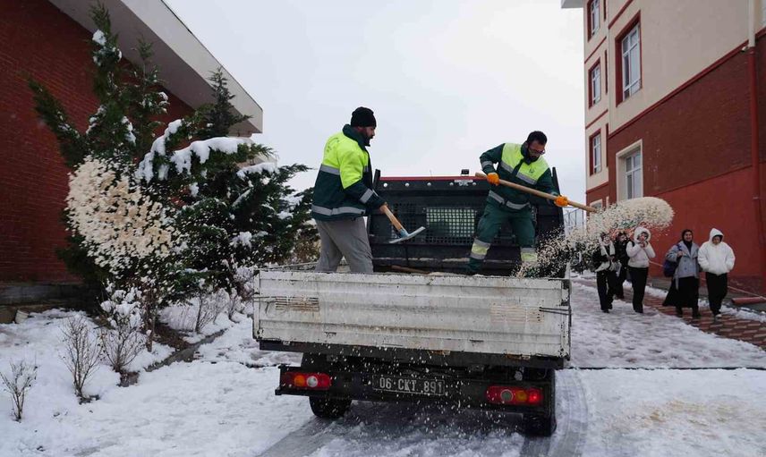Ankara’da dün akşam etkili olan kar yağışının ardından oluşabilecek buzlanma riskine karşı Keçiören Belediyesi, kaldırımlar, okul bahçeleri ve çevresinde kar küreme ve tuzlama çalışması yürütüyor.