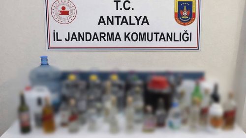 Antalya'nın Kemer ilçesinde jandarmanın operasyonunda, rakı, viski, şarap ve etil alkol dahil çeşitli sahte ve kaçak içkiler ele geçirildi; dört şüpheli hakkında adli tahkikat başlatıldı.