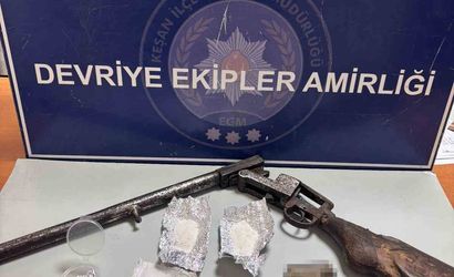 Edirne'nin Keşan ilçesinde polis ekipleri, şüphe üzerine durdurarak arama yaptıkları bir araçta arama gerçekleştirdi. Yapılan aramada 19 gram uyuşturucu madde ile 1 ruhsatsız av tüfeği ele geçirildi.