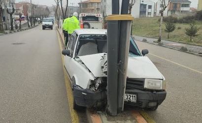 Alınan bilgiye göre, Rasim Ergene Caddesi üzerinden Adalet Sarayı istikametine giden Y.Ç. yönetimindeki 34 UH 3211 plakalı otomobil, Damla Sokak kesişimine geldiği sırada kontrolden çıkarak önce refüjde bulunan çiçekliğe ardından aydınlatma direğine çarptı.