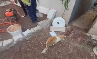 Kedinin miyavlamasını duyan vatandaşlar durumu 112 Acil Çağrı Merkezi'ne bildirdi. İhbarın ardından olay yerine sevk edilen ekipler hızlı müdahale için bölgeye yönlendirildi.
