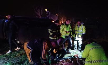 Hatay’ın Kırıkhan ilçesi Özsoğuksu Mahallesi çevre yolu üzerinde meydana gelen kazada, 31 ASP 665 plakalı otomobil sürücüsünün direksiyon hakimiyetini kaybetmesi sonucu yoldan çıkarak devrildi.