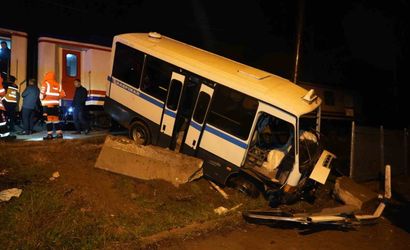 Kırıkkale'nin Aşağımahmutlar Mahallesinde meydana gelen kazada, bariyerleri kapalı olan hemzemin geçitten geçmeye çalışan dolmuş raylarda asılı kaldı. Araç, 71 M 0182 plakalı dolmuş olup sürücüsünün L.T. olduğu belirtildi.