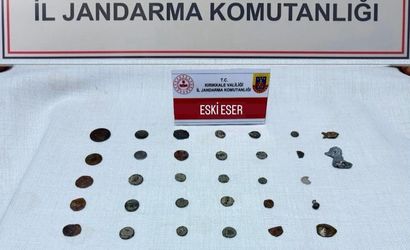 Kırıkkale İl Jandarma Komutanlığı ekipleri, yol kontrol noktasında şüphe üzerine bir aracı durdurdu. Araç sürücüsü T.D. (28) üzerinde yapılan aramada, tarihi eser niteliğinde olduğu değerlendirilen 38 adet sikke, 4 adet obje ve 2 adet yüzük ele geçirildi.