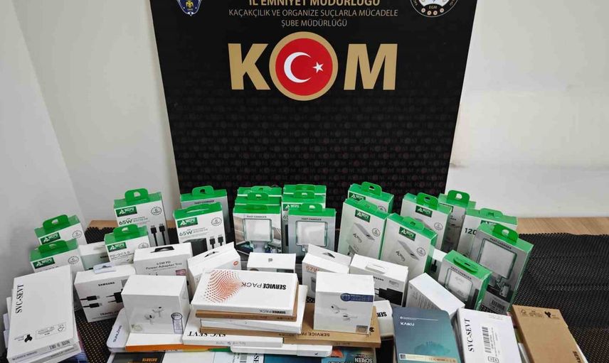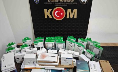 İl merkezinde H.G.'ye ait işyerinde yapılan aramada 31 kulaklık, 62 şarj kablosu ve cihazı, 22 şarjlı ve benzinli çakmak ile 6 transmitter ele geçirildi.