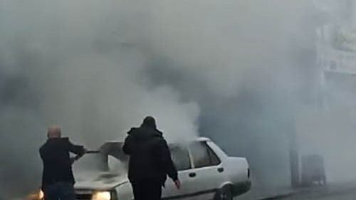 Kırşehir Kuşdilli'de 06 S 8028 plakalı otomobil seyir halindeyken yandı; çevredeki esnaf yangın söndürme tüpleriyle alevleri büyümeden kontrol altına aldı.
