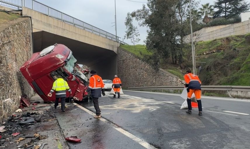 Kocaeli Çayırova'da tır istinat duvarına çarptı: sürücü ağır yaralı