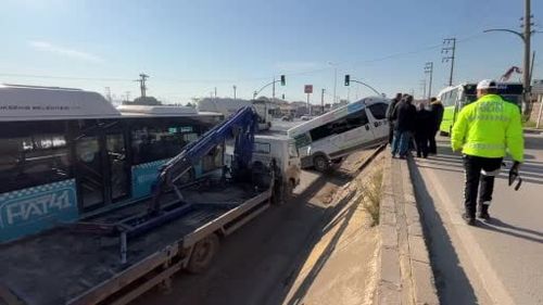 Kocaeli Derince'de park halindeki 41 P 9952 plakalı minibüs, geri manevra sonrası istinat duvarından D-100 kara yolu kenarına düşerek asılı kaldı; yaralanan yok.
