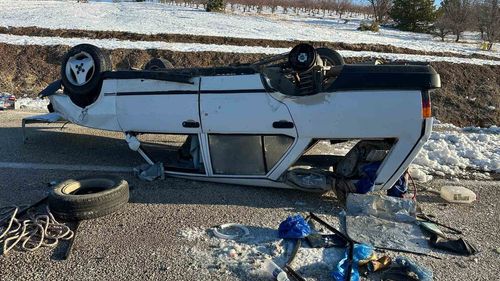 Konya'nın Bozkır ilçesi Kadibeli mevkiinde buzlanma nedeniyle takla atan 42 RA 284 plakalı otomobilde sürücü M.Ç. yara almadan kurtuldu; ekipler olay yerindeydi.