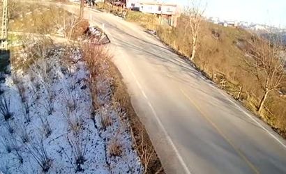 Kaza anı, bölgede bulunan bir evin güvenlik kamerası tarafından kaydedildi. Görüntülerde virajı dönen aracın hızlı bir şekilde yoldan çıkarak havalandığı, yaklaşık 3 saniye boyunca uçarcasına ilerledikten sonra fındık bahçesine devrildiği anlar yer alıyor.