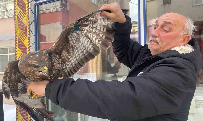 Ordu'nun Korgan ilçesinde pastanesi bulunan esnaf Ali Sesişen, bir süre önce kanadından yaralı ve yorgun halde bir yırtıcı kuş buldu. Atmaca zannettiği kuşu önce veteriner hekime götüren Sesişen, hayvanın boz şahin olduğunu öğrendi.