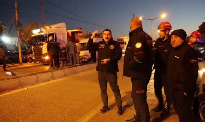 R.O. yönetimindeki 27 AJT 454 plakalı narenciye işçilerini taşıyan minibüs ile A.Y. idaresindeki 01 APZ 677 plakalı tır çarpıştı.