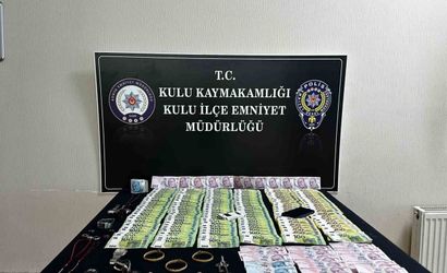 Şüphelinin yanında bulunan çantada yapılan aramada; 3 adet bilezik, 27 bin 550 euro, 8 bin 235 TL ile Mercedes marka bir araca ait anahtar ele geçirildi. Bu eşyaların, 28 Aralıkta Kulu ilçesi Cumhuriyet Mahallesi’nde meydana gelen oto ve evdeki kasadan hırsızlık olaylarında çalınan eşyalar olduğu tespit edildi.