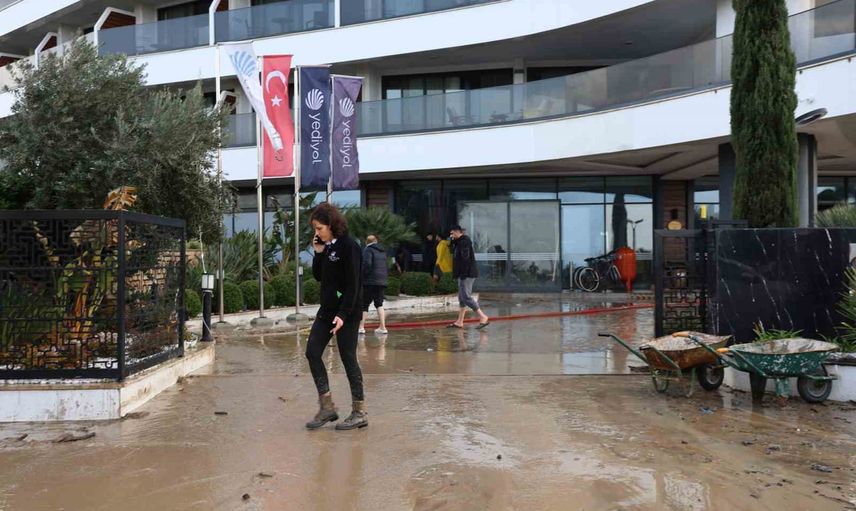 Aydın'ın Kuşadası ilçesinde öğlen saatlerinde etkili olan yağışın sele dönüşmesiyle ev, iş yeri, otel, tarlalar ve araçlarda ciddi hasar meydana geldi. Bölge sakinleri yakın zamanda benzer bir yağış görmediklerini belirtirken, yetkililer acil müdahale çalışmalarını sürdürüyor.