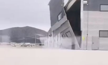 KÜTAHYA'DA ŞİDDETLİ RÜZGÂR FABRİKANIN DUVARINI İŞTE BÖYLE YIKTI