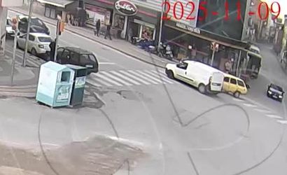 Edinilen bilgilere göre, cadde üzerinde seyir halinde olan bir otomobil, yaya geçidinden geçen motosikletli kuryeye çarptı. Meydana gelen kaza, bölgedeki Kent Güvenlik Yönetim Sistemi (KGYS) kameraları tarafından saniye saniye kaydedildi.