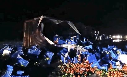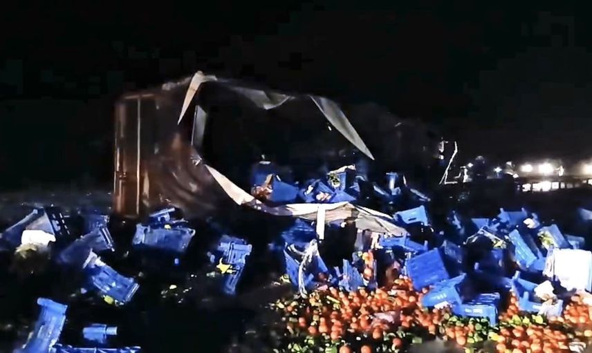 Edinilen bilgilere göre, 07 TBZ 44 plakalı tır, yağış nedeniyle sürücünün direksiyon hâkimiyetini kaybetmesi sonucu yan yattı. Kazayla birlikte tırın dorsesindeki meyveler karayoluna saçıldı.