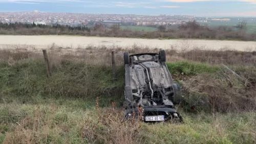 D100 Karayolu Lüleburgaz Şehir Mezarlığı mevkiinde 34 BB 2363 plakalı otomobilin şarampole yuvarlanması sonucu sürücü M.B. yaralandı.
