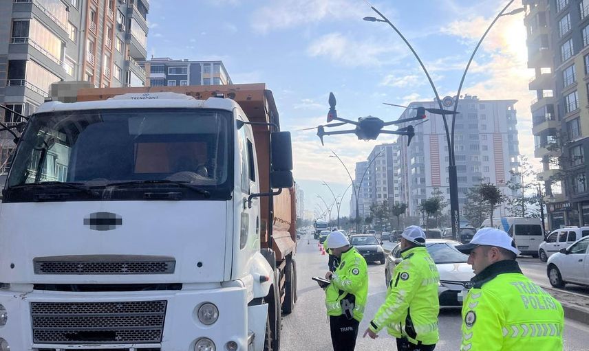 Malatya Emniyet Müdürlüğü ekipleri, şehir genelinde beton mikserleri, hafriyat kamyonları ve yük taşımacılığı yapan araçlara yönelik dron destekli denetimlerini aralıksız sürdürüyor.