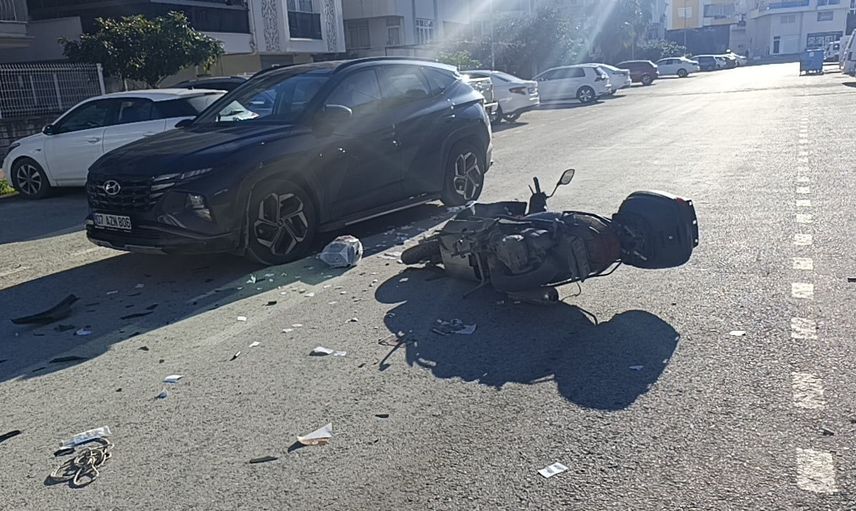 Manavgat'ta motosiklet devrilip otomobile çarptı
