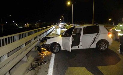 Antalya’nın Manavgat ilçesinde, Antalya-Alanya D-400 Karayolu üzerinde köprülü kavşakta meydana gelen kazada 07 EYB 25 plakalı otomobil kontrolden çıkarak bariyerlere çarptı.